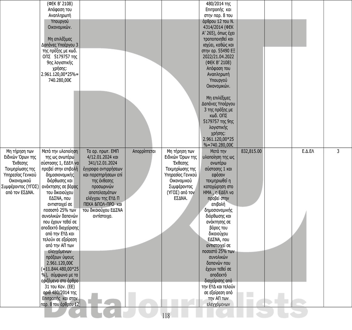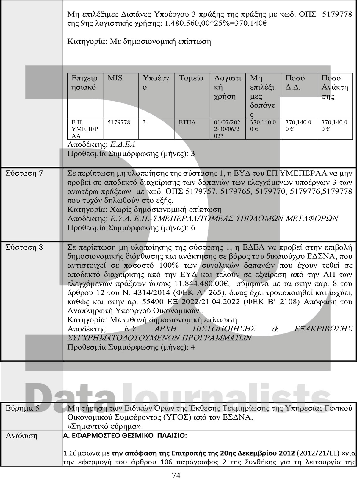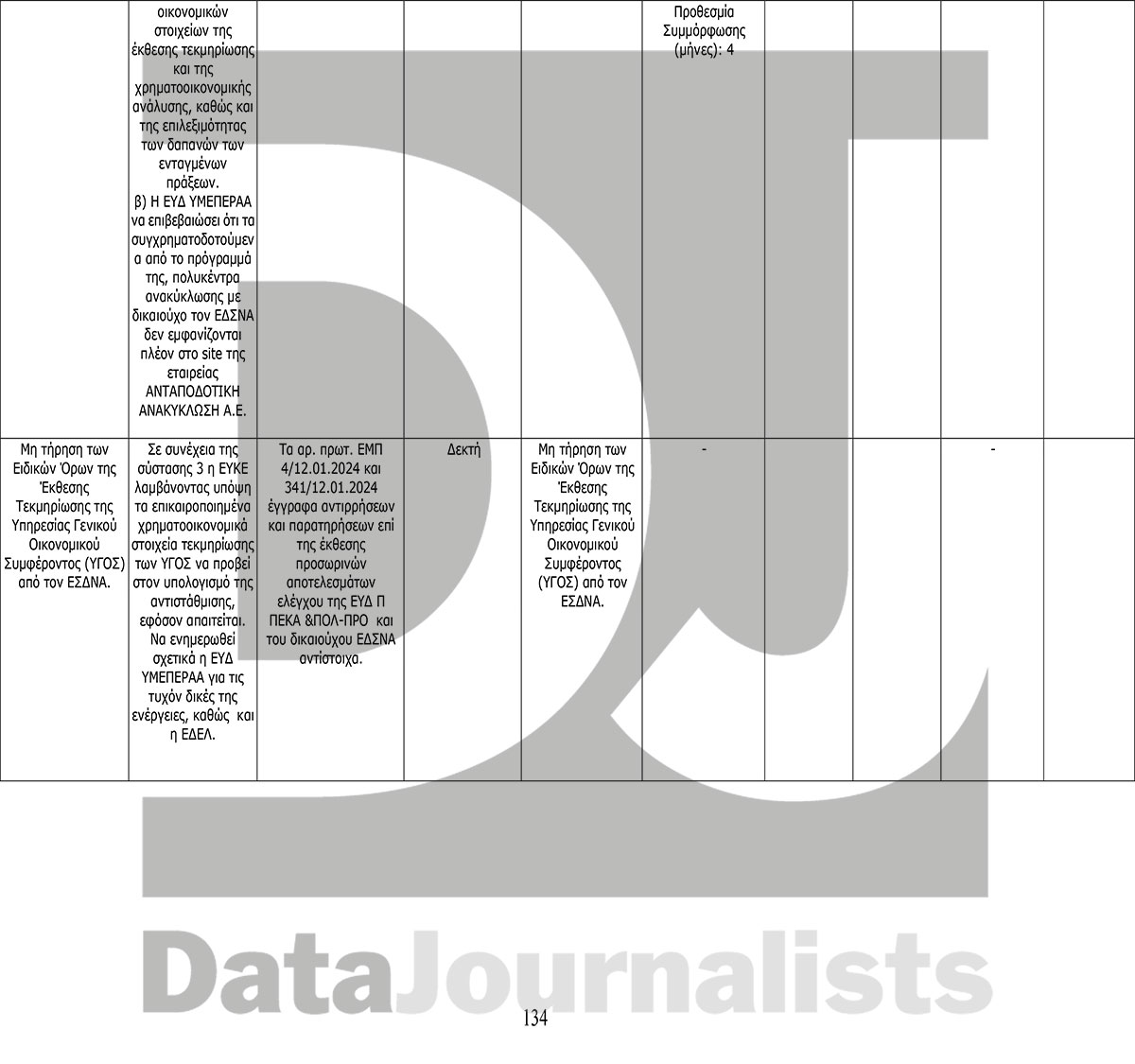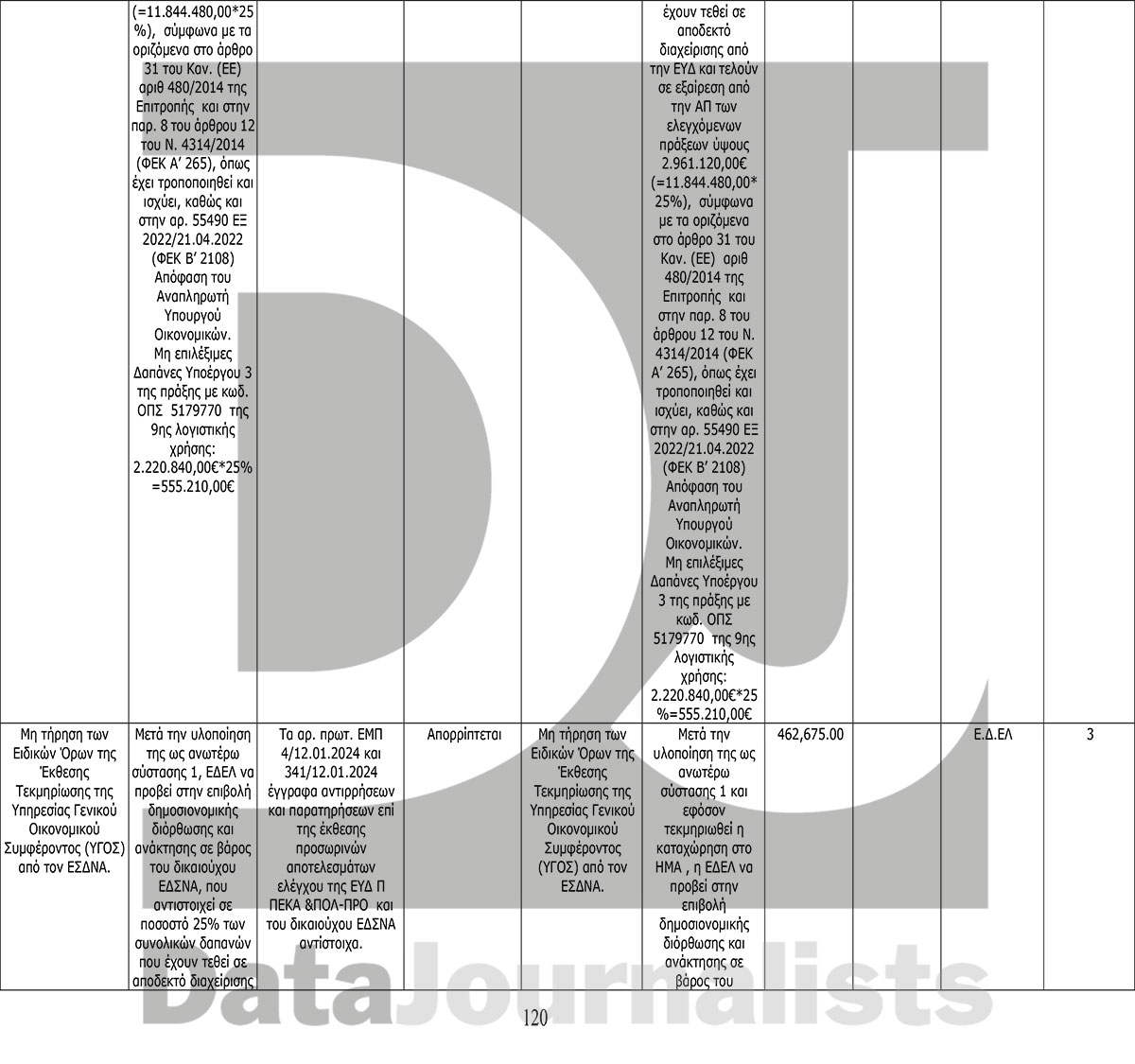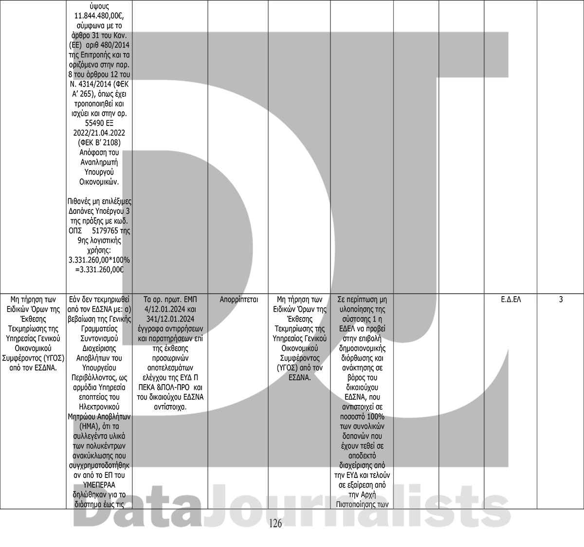 - Δεν τηρήθηκαν οι Ειδικοί Όροι της Έκθεσης Τεκμηρίωσης της Υπηρεσίας Γενικού Οικονομικού Συμφέροντος (ΥΓΟΣ) από τον ΕΔΣΝΑ