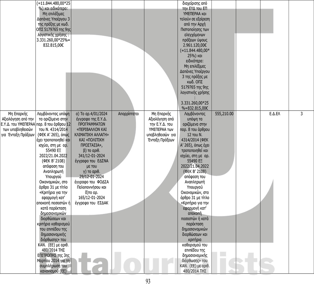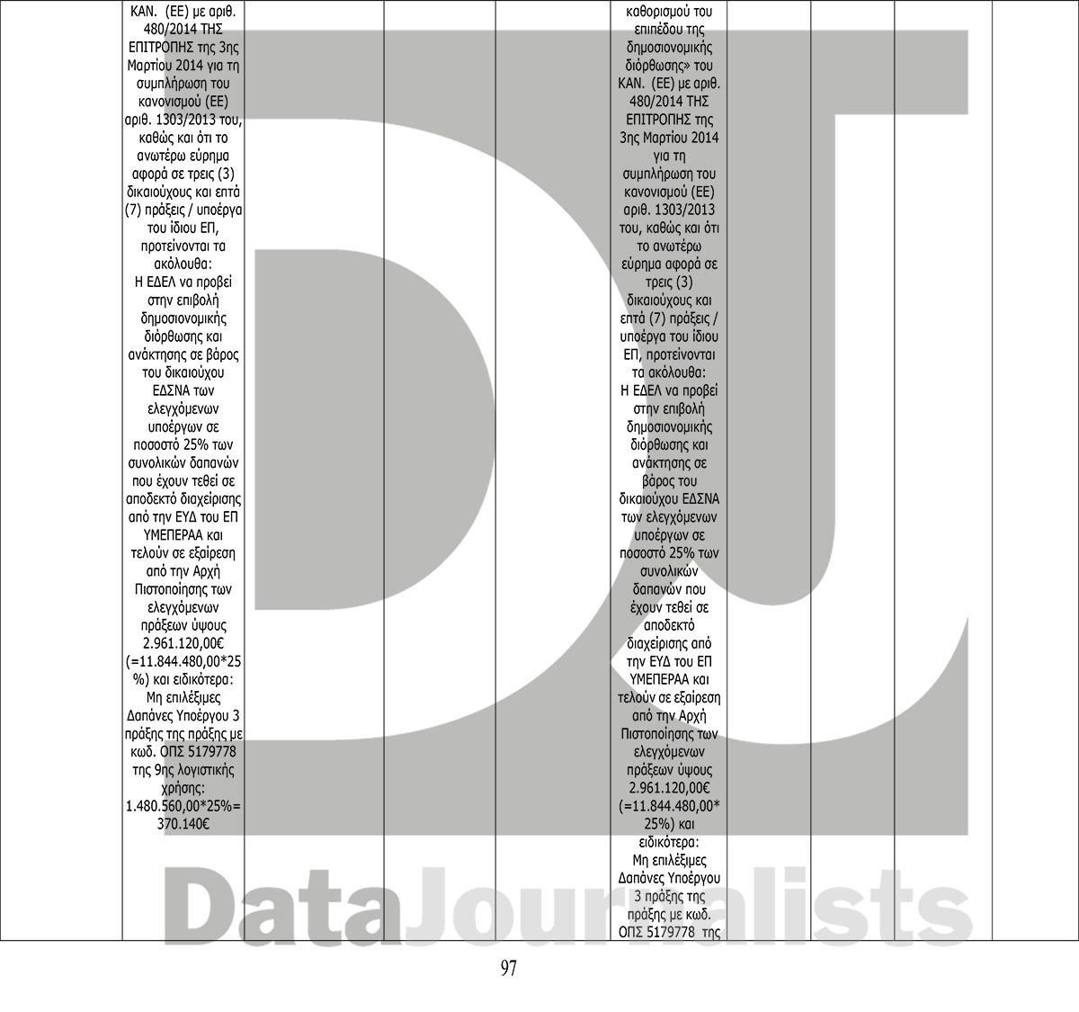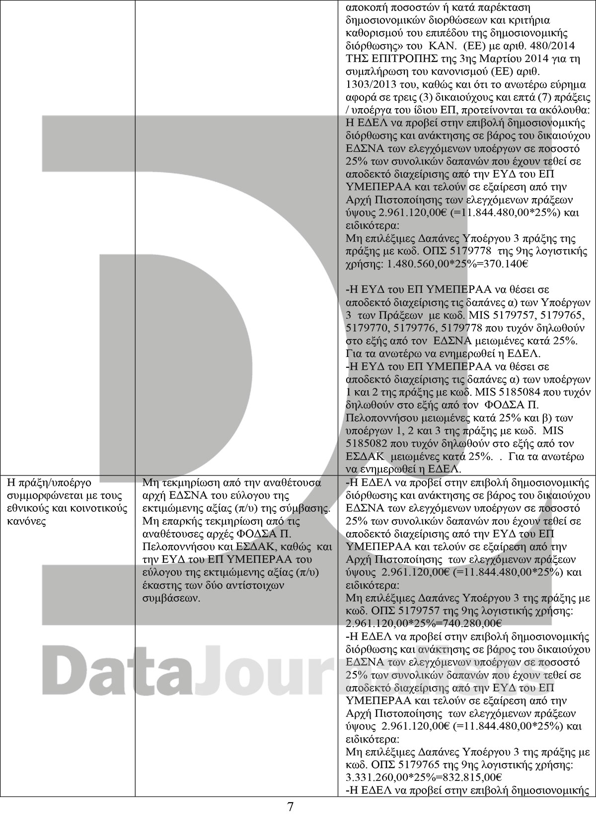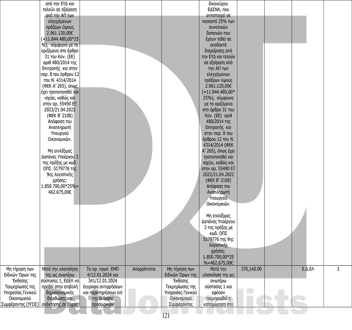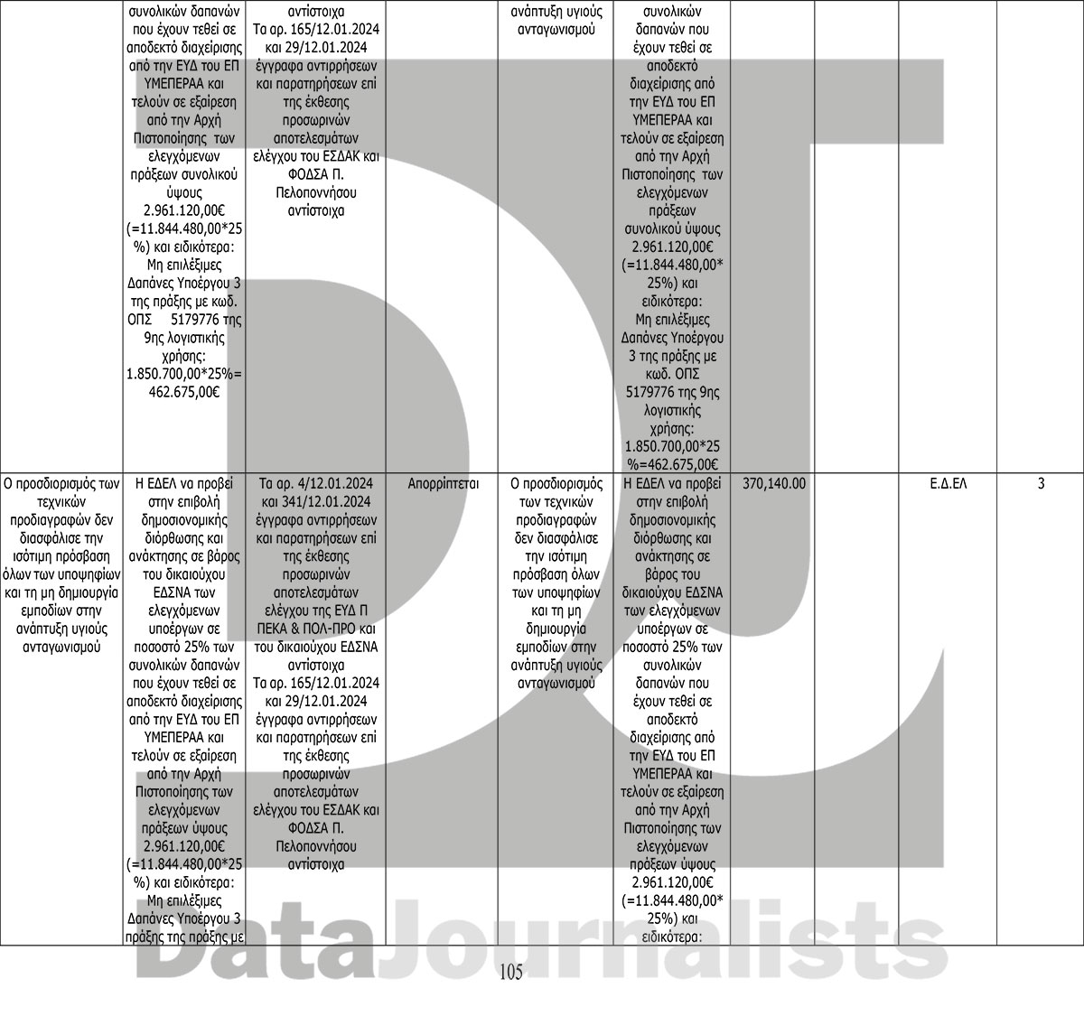 - Δεν τηρήθηκαν οι Ειδικοί Όροι της Έκθεσης Τεκμηρίωσης της Υπηρεσίας Γενικού Οικονομικού Συμφέροντος (ΥΓΟΣ) από τον ΕΔΣΝΑ