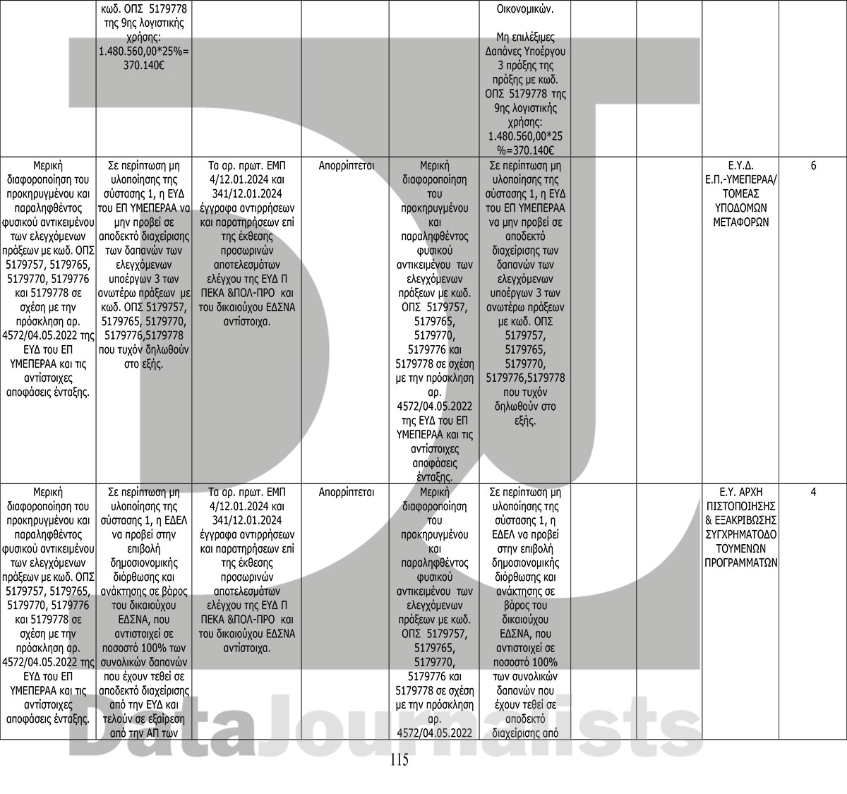 - Υπήρχαν διαφορές ανάμεσα στην πρόσκληση που είχε βγάλει το 2022 ο φορέας χρηματοδότησης του όλου προγράμματος (ΥΜΕΠΕΡΑΑ), τους διαγωνισμούς κάθε φορέα και τα παραληφθέντα αντικείμενα.