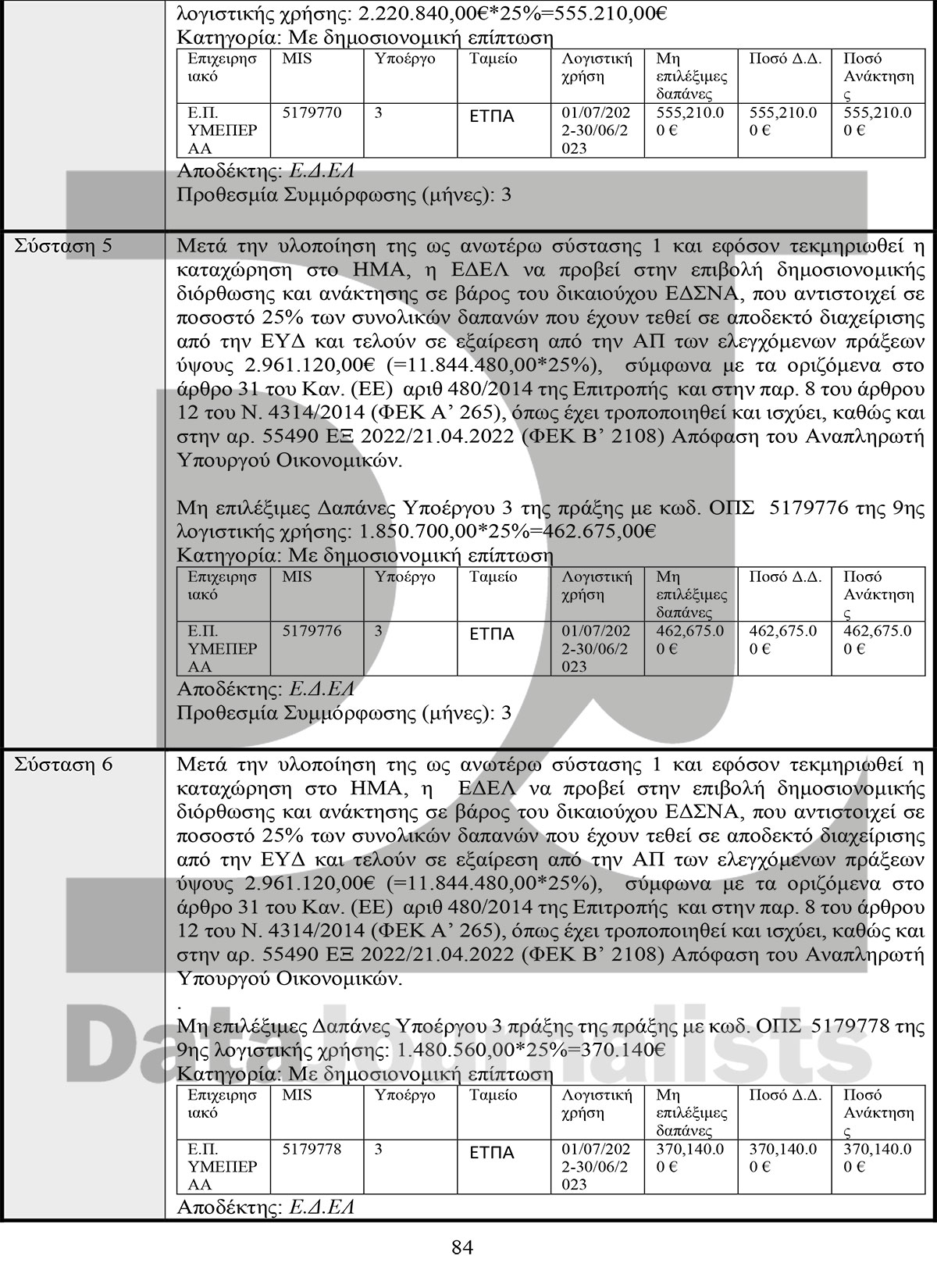– Ο ΕΔΣΝΑ πρέπει να «λάβει υπόψη την τυχόν μείωση εσόδων του από την εκμετάλλευση των ανακυκλώσιμων υλικών της ΑΝΤΑΠΟΔΟΤΙΚΗΣ ΑΝΑΚΥΚΛΩΣΗΣ Α.Ε., τη μείωση των εξόδων από τη μη χρήση οχημάτων για την αποκομιδή και μεταφορά των ανακυκλώσιμων υλικών και τη μείωση της δαπάνης μισθοδοσίας του απασχολούμενου προσωπικού, δεδομένου ότι η μεταφορά των ανακυκλώσιμων υλικών φέρεται να έγινε από την ΑΝΤΑΠΟΔΟΤΙΚΗ ΑΝΑΚΥΚΛΩΣΗ για το χρονικό διάστημα από 5/8/2022 έως 7/7/2023».